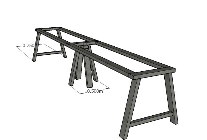 Tres  costados, dos externos uno central  con doble viga de amarre, con ajuste por medio de tuerca tornillo – Niveladores de altura.